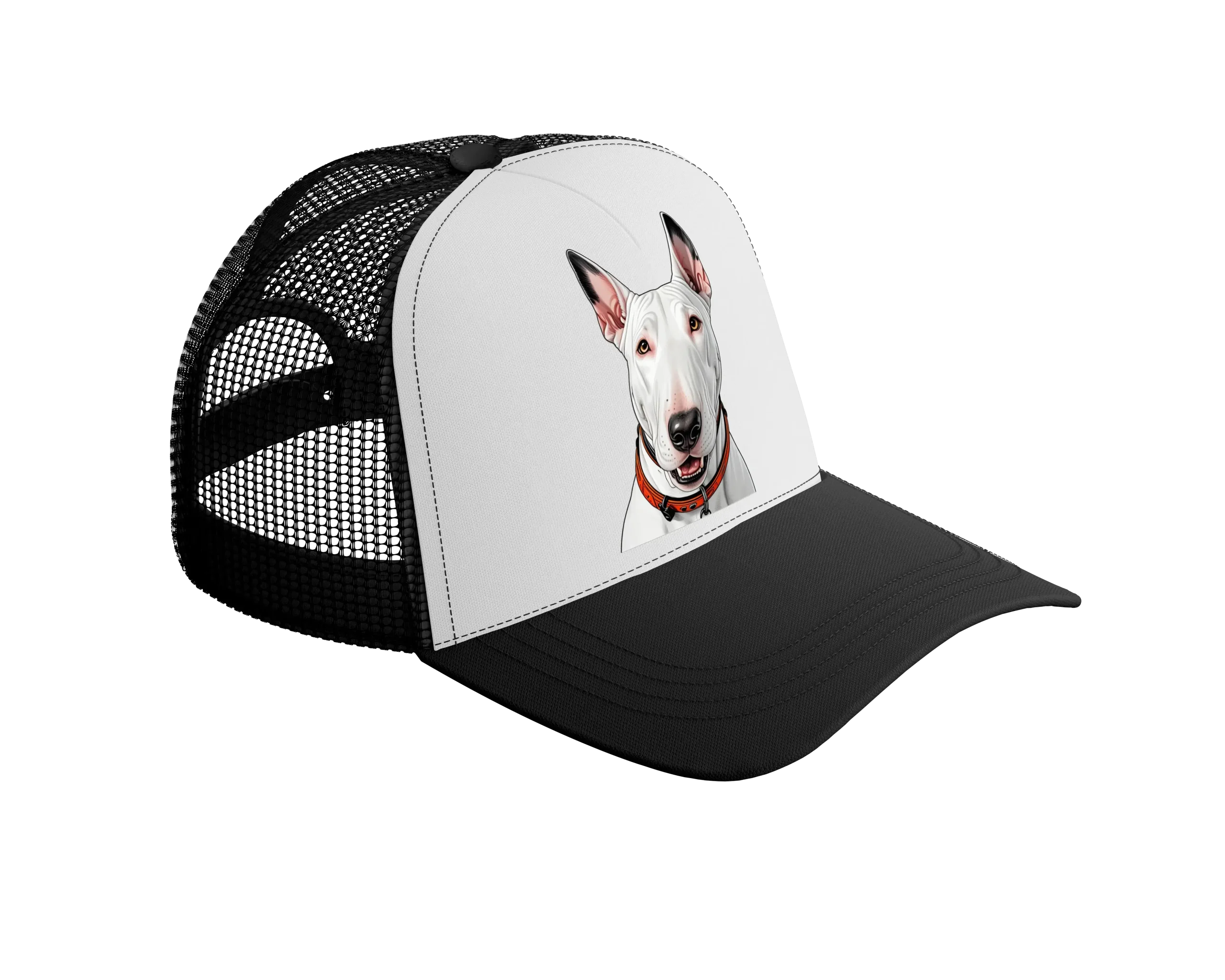 Enjoy the sun with our exclusive Bull Terrier Portrait Trucker Cap, made with care in South Africa. This cap is a great choice for Bull Terrier lovers.